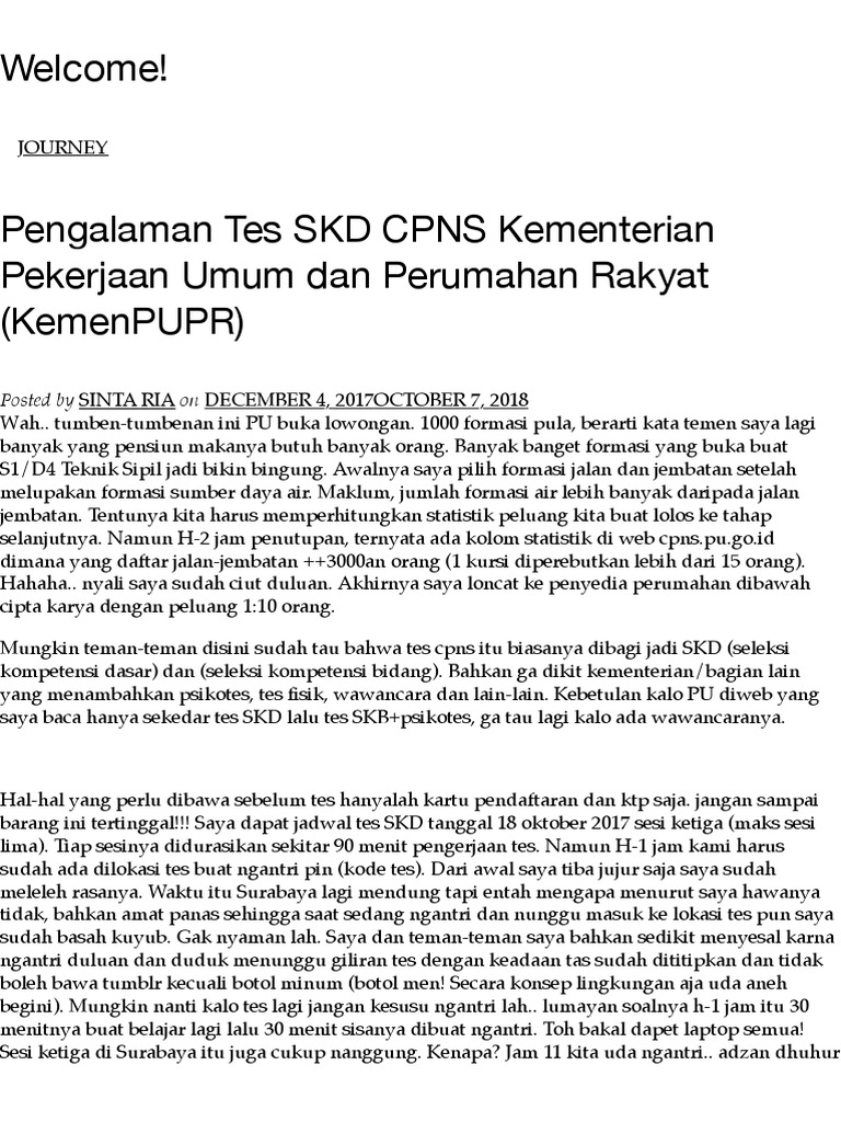 Contoh Soal Psikotes Cpns Pupr Soal Kelasmu from lh6.googleusercontent.com Soal dan jawaban termodinamika 2. 28 adalah berapa persen dari 70 a. Skb cpns jalan dan jembatan (repost 02). Sebagai persiapan dan latihan soal untuk anda dalam menghadapi semua tahapan tes skb seleksi penerimaan cpns 2019 nanti. Banyak orang yang takut ketika menghadapi pisikotes dikarenakan memang tes ini merupakan tes yang cukup sulit bagi sebagian. Psikotes 2 kemampuan verbal berapakah jumlah 47 orang dan 9 orang ? Simulasi cpns dan psikotes gratis. Berikut, 50 contoh soal cpns tes kemampuan bidang ( tkb) pendidikan beserta kunci jawaban.