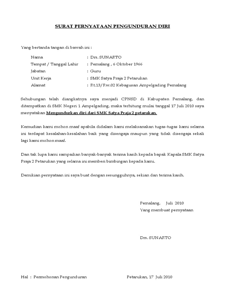 Secara resmi terhitung hari ini tanggal 26 november 2018, saya mengundurkan diri sebagai guru matematika di. Pengunduran diri ini saya ajukan karena adanya. Berikut contoh ringkas beberapa surat pengunduran diri resmi dari profesi guru, karyawan swasta, hingga organisasi kemahasiswaan. Download contoh surat pengunduran diri karyawan kontrak doc. Seperti apa contoh surat mengundurkan diri yang baik dan benar agar tetap menjaga kesan baik di perusahaan.