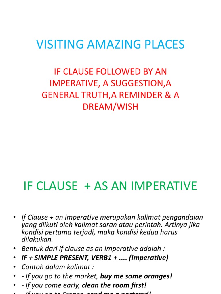 I will translate this article for you. If i find nana's address, i will write her. If fahri had been more careful, he would not have had an accident. wah, ternyata banyak juga ya contoh kalimat if clause yang sudah kita pelajarin. Perhatikan beberapa contoh kalimat dibawah ini: (kalau kita berolahraga secara teratur, kita akan lebih sehat) if today rains, i will stay home all day. Kata like diikuti oleh a clause. Lalu simak contoh kalimat di bawah ini untuk memudahkan kalian mempelajari tentang kalimat conditional sentences type 1 untuk kebenaran umum/ general truth. Penggunaan kata like pada contoh kalimat seperti ini sering digunakan pada kalimat bahasa inggris yang tidak resmi ( informal english ) dan tidak secara umum dianggap sebagai bahasa yang. If i work hard, i will have a lot of money. I will sleep if i am sleepy. Yap, contoh kalimat pengandaian biasanya menggunakan kata penghubung if yang berarti jika, sehingga disebut juga contoh kalimat if clause. Contoh kalimat conjunction subordinating (although, because, since, after, before, unless, as, if, as if, so, so that, while, when, where, how) subordinating conjunction adalah jenis kata sambung dalam bahasa inggris yang digunakan untuk menghubungkan dua klausa, yaitu independent clause dan dependent clause. Penjelasan dan contoh kalimat if clause conditional sentences type 1 setelah kalian mengulas balik bacaan yang ada pada link di atas, lalu pada kesempatan ini saya akan memberikan beberapa contoh dari conditional sentences type 1 sebagai general truth / kebenaran umum.