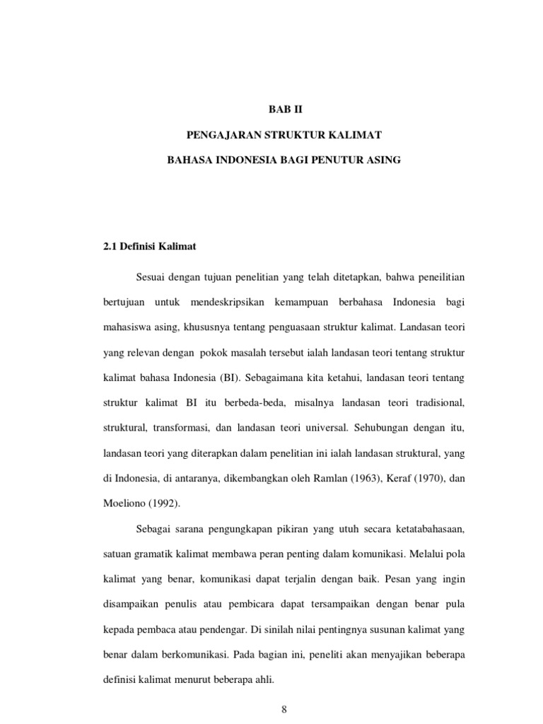 Struktur Kalimat Bahasa Indonesia - Interferensi Pemahaman Struktur Kalimat Bahasa Indonesia Oleh Mahasiswa Jepang Dalam Pembelajaran Bahasa Indonesia - Bahasa indonesia yang berasal dari bahasa melayu.. Bahasa indonesia bahasa indonesia adalah bahasa resmi negara kita. Kalimat efektif selalu memiliki struktur atau bentuk yang jelas. Penggunaan kata berlebih yang 'mengganggu' struktur kalimat : Kalimat yang disusun hendaknya memiliki struktur kalimat bahasa indonesia yaitu s p o k/pel. Interferensi terjadi pada penempatan posisi fungsi sintaksis pada kalimat bahasa mandarin yang mengikuti struktur kalimat tunggal dan kalimat majemuk bahasa indonesia, terdapat pada fungsi sintaksis keterangan (k), tataran posisi predikat (p), dan subjek (s).